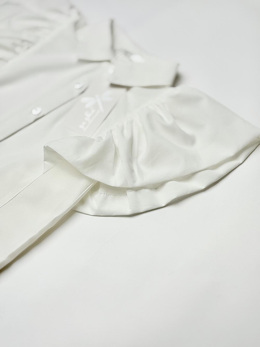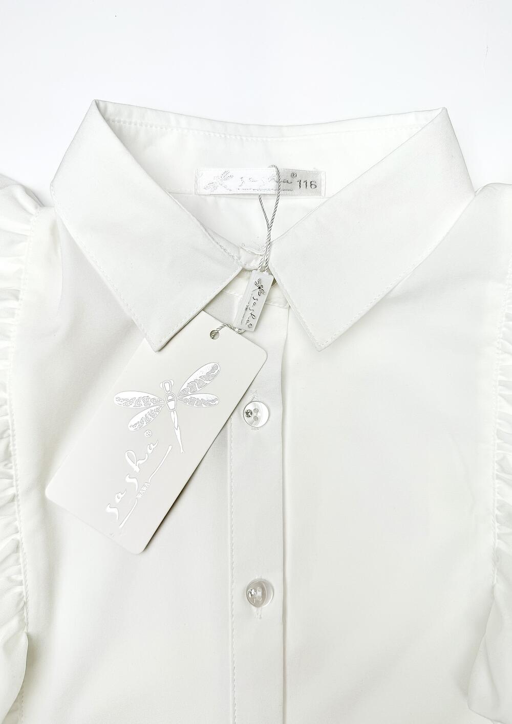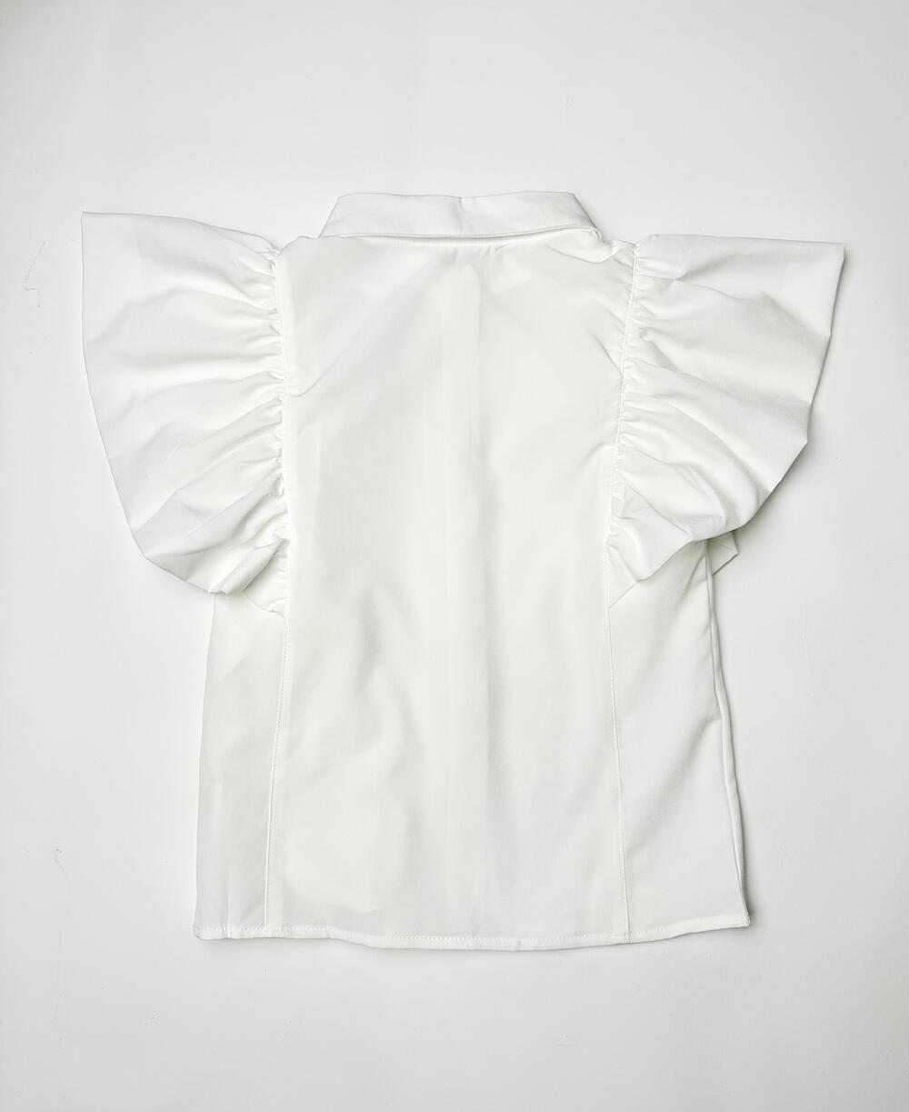 Біла блуза класичного крою з повітряними витонченими рукавами та деталізованими камінчиком ґудзиками. Додасть казковості та легкості у повсякденному стилі та святкові події.
