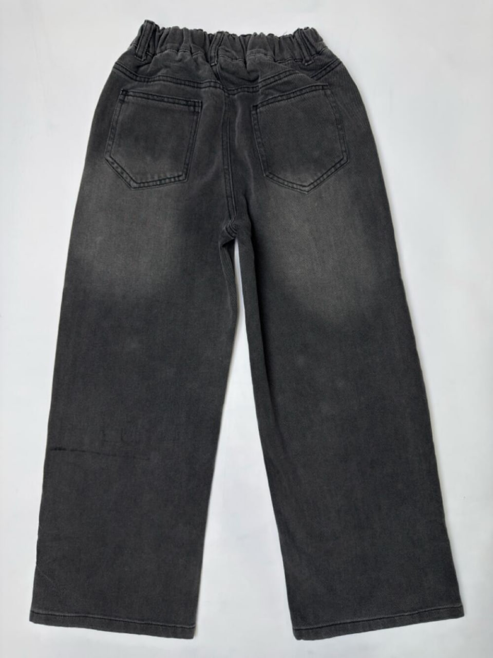 Прямий крій, еластична резинка на поясі з декоративним ґудзиком і петлями для ременя. Стильний градієнтний перехід від чорного до сірого створює ефект об’єму, а легкі бризки додають характеру. Декоративний надпис спереду підкреслює сучасний стиль.