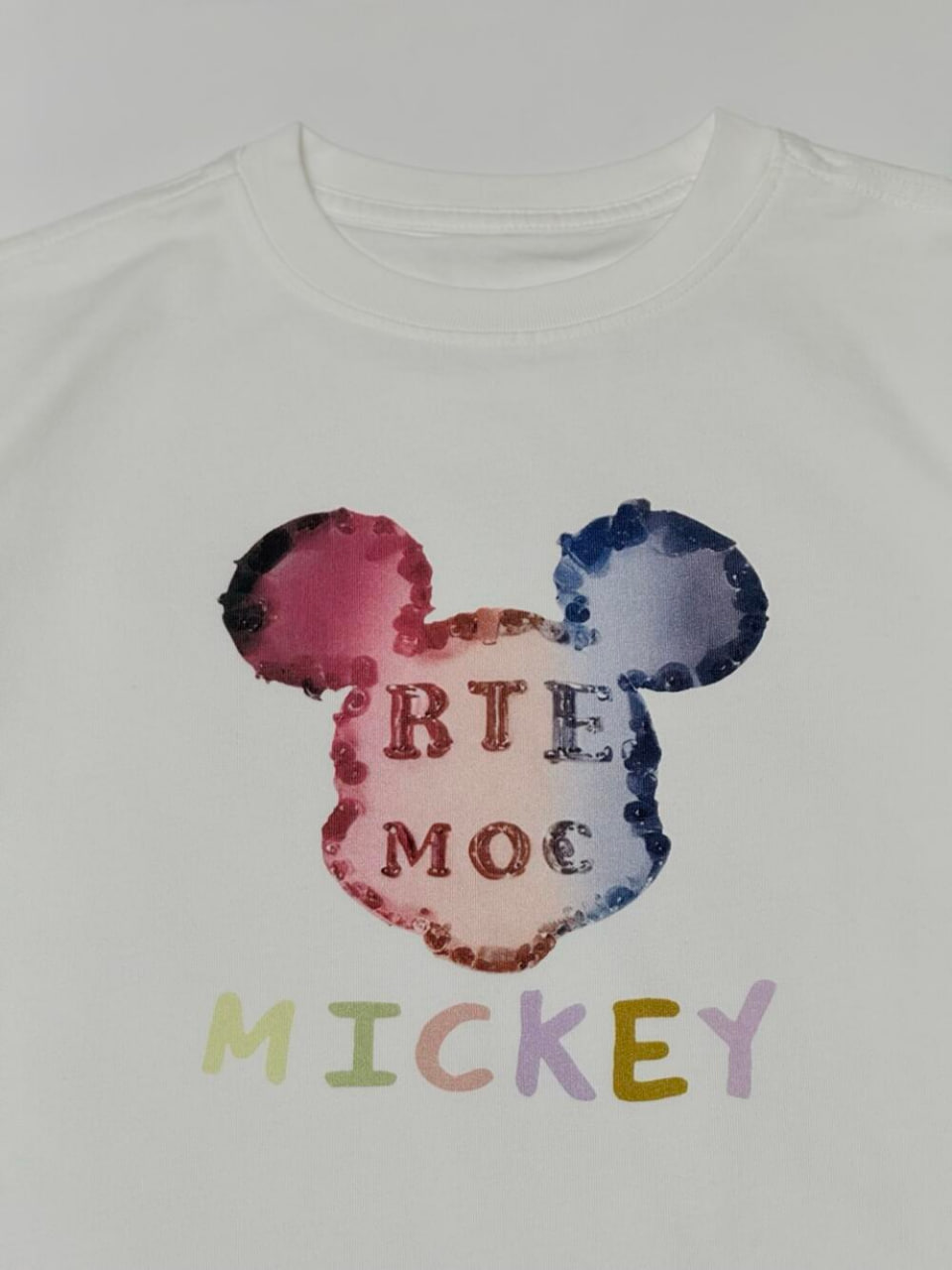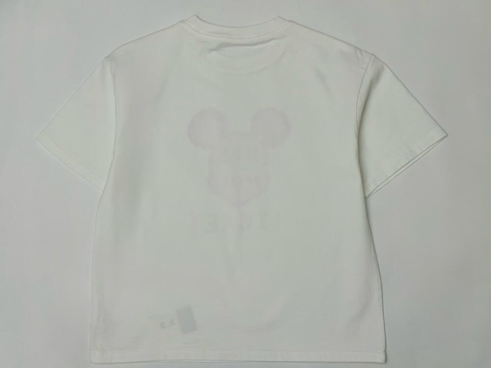 Універсальна футболка Mickey – стильна та вміру яскрава. Футболка має вільний крій із круглим вирізом горловини та короткими рукавами, що робить її універсальною та зручною для будь-якої пори року. Основний акцент – креативний принт у вигляді силуету голови Міккі Мауса, виконаний у ніжних акварельних відтінках. Яскравий напис MICKEY з різнокольоровими літерами додає дизайну грайливості та позитивного настрою.