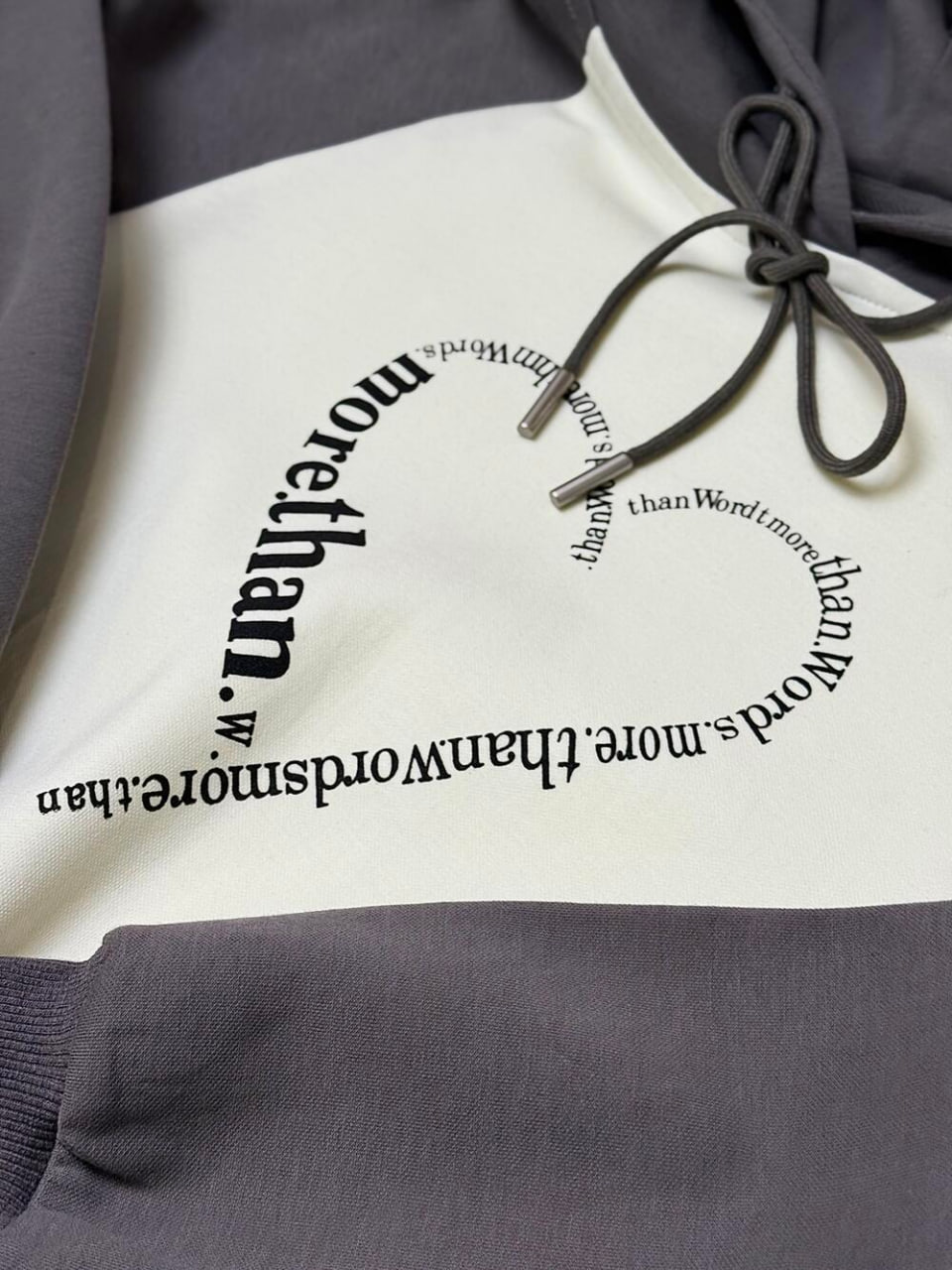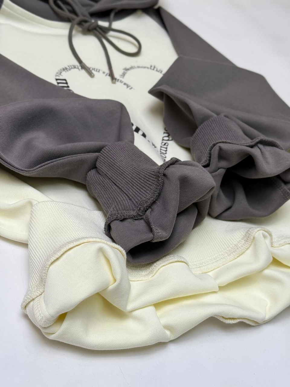 Худі у відтінку айворі та поєднанні сірого з ніжним принтом-серцем на грудях.