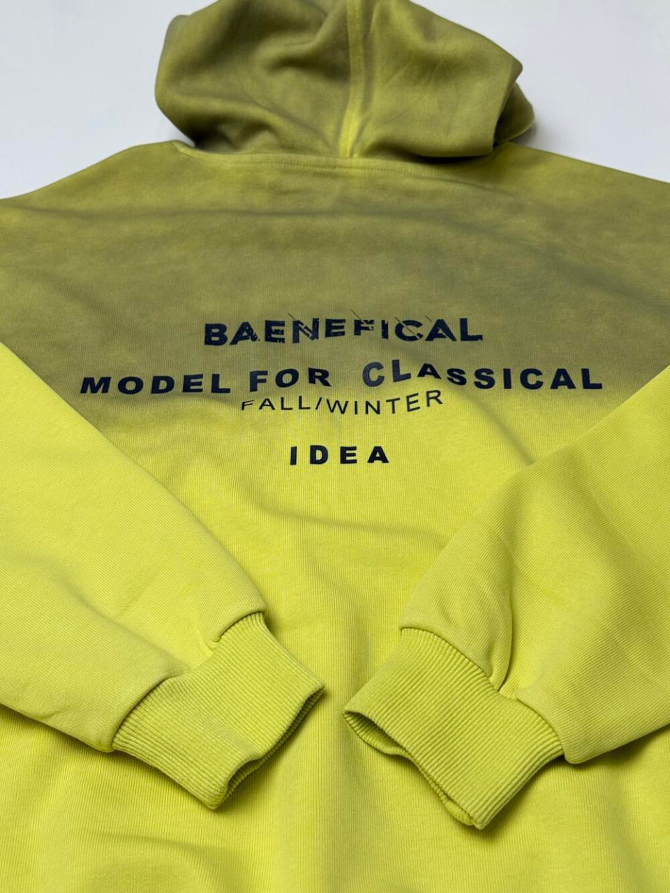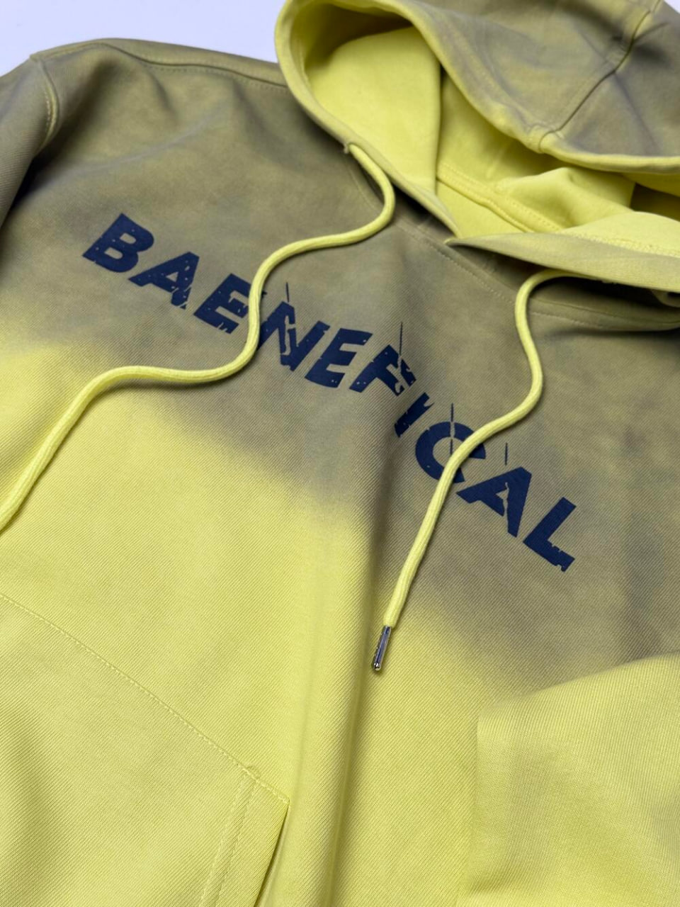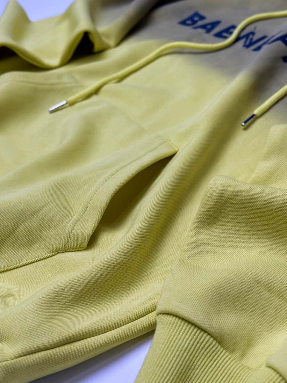 Універсальне худі з капюшоном із зав’язками та кишенею-кенгуру. Дизайн створений в стилі омбре, де темніший колір на капюшопі плавно переходить в світліший на плечах та рукавах і завершується приємним світлим відтінком аж до низу. Доповнює стильний вигляд надпис по всій ширині вгорі.