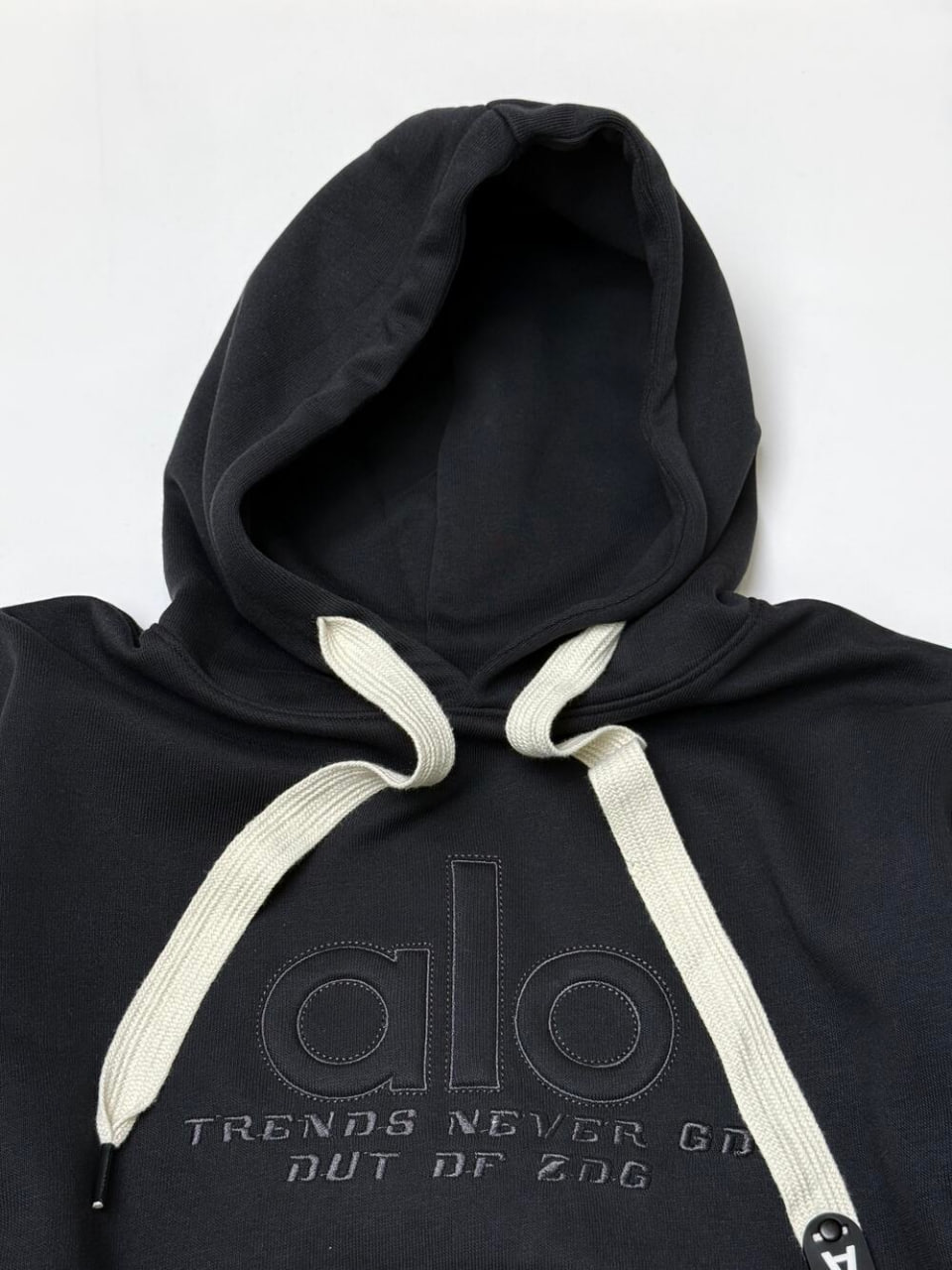 Об’ємний капюшон і м’яка на дотик тканина забезпечують комфорт, а лаконічна вишивка alo додає сучасності.