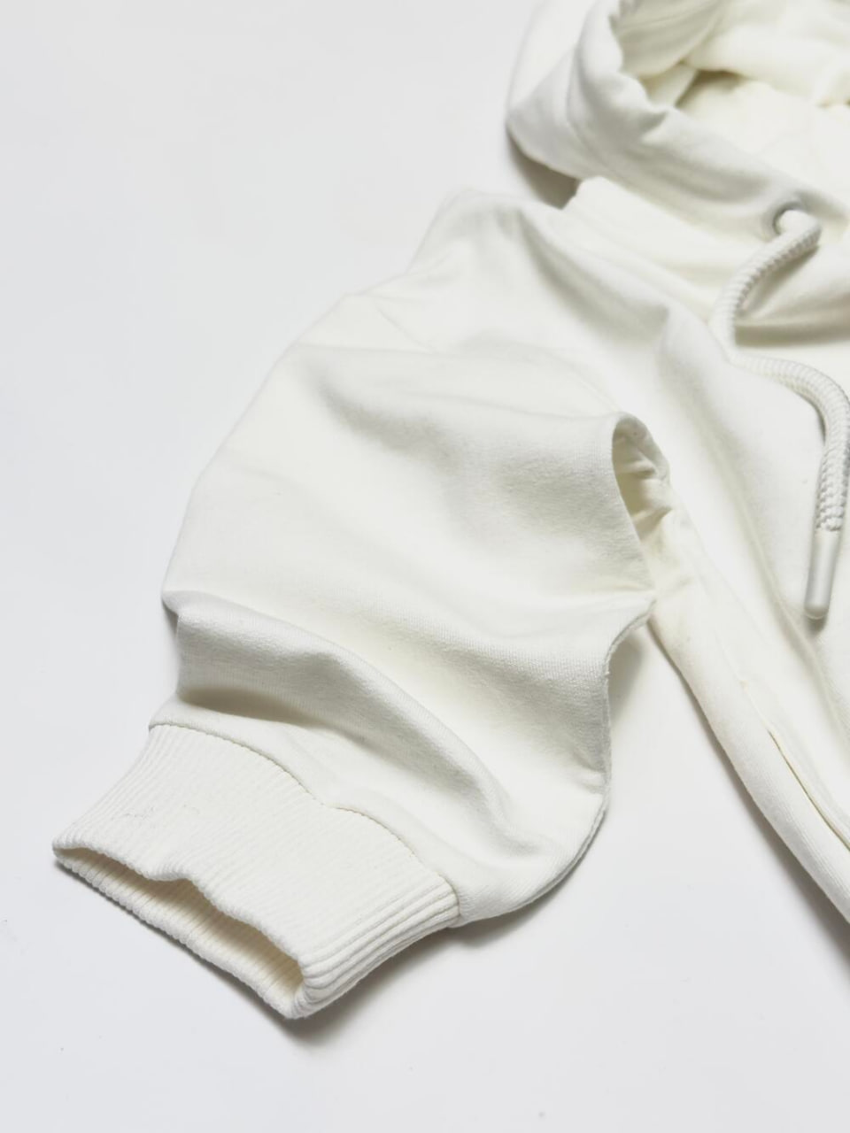 Худі, шнурівки на капюшопі, еластичні манжети виконані в одному світлому кольорі.