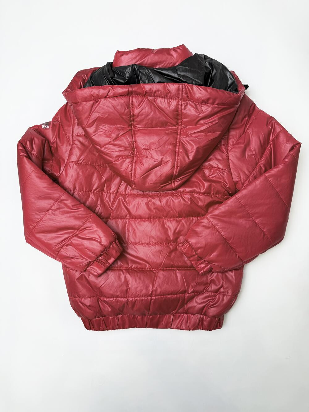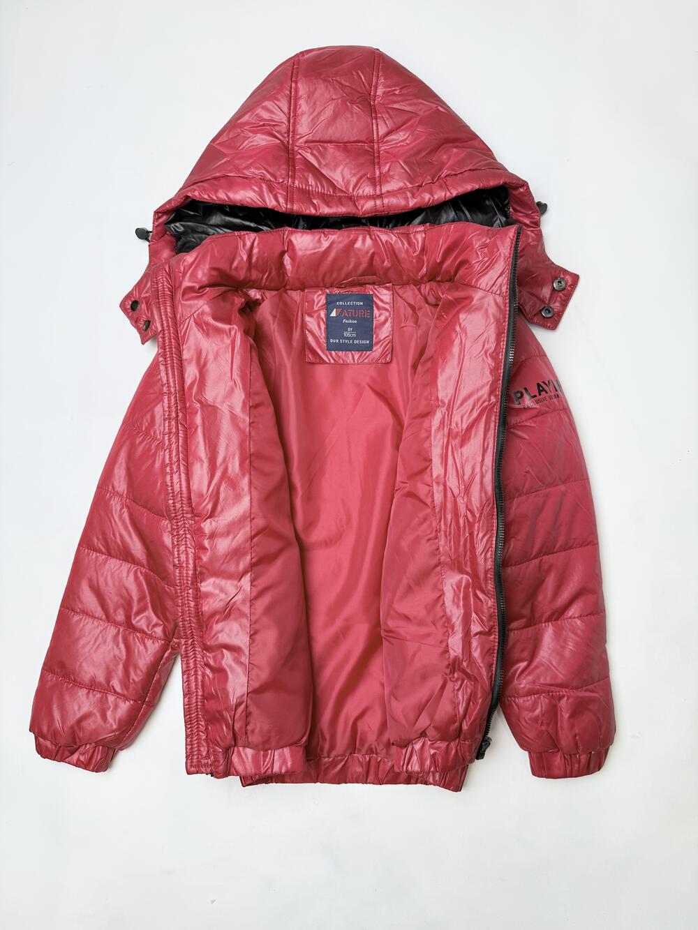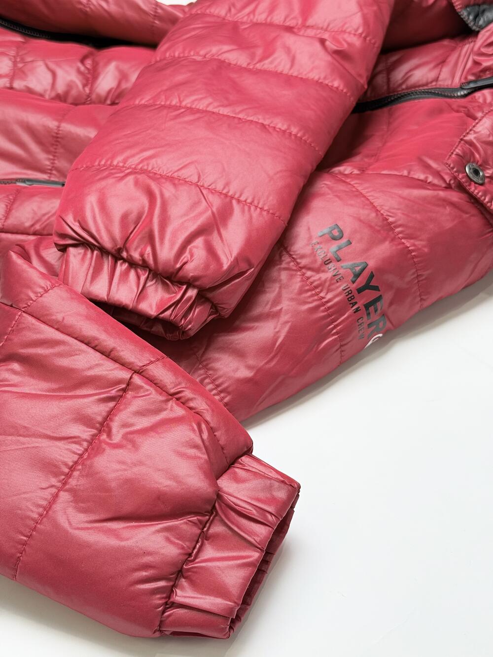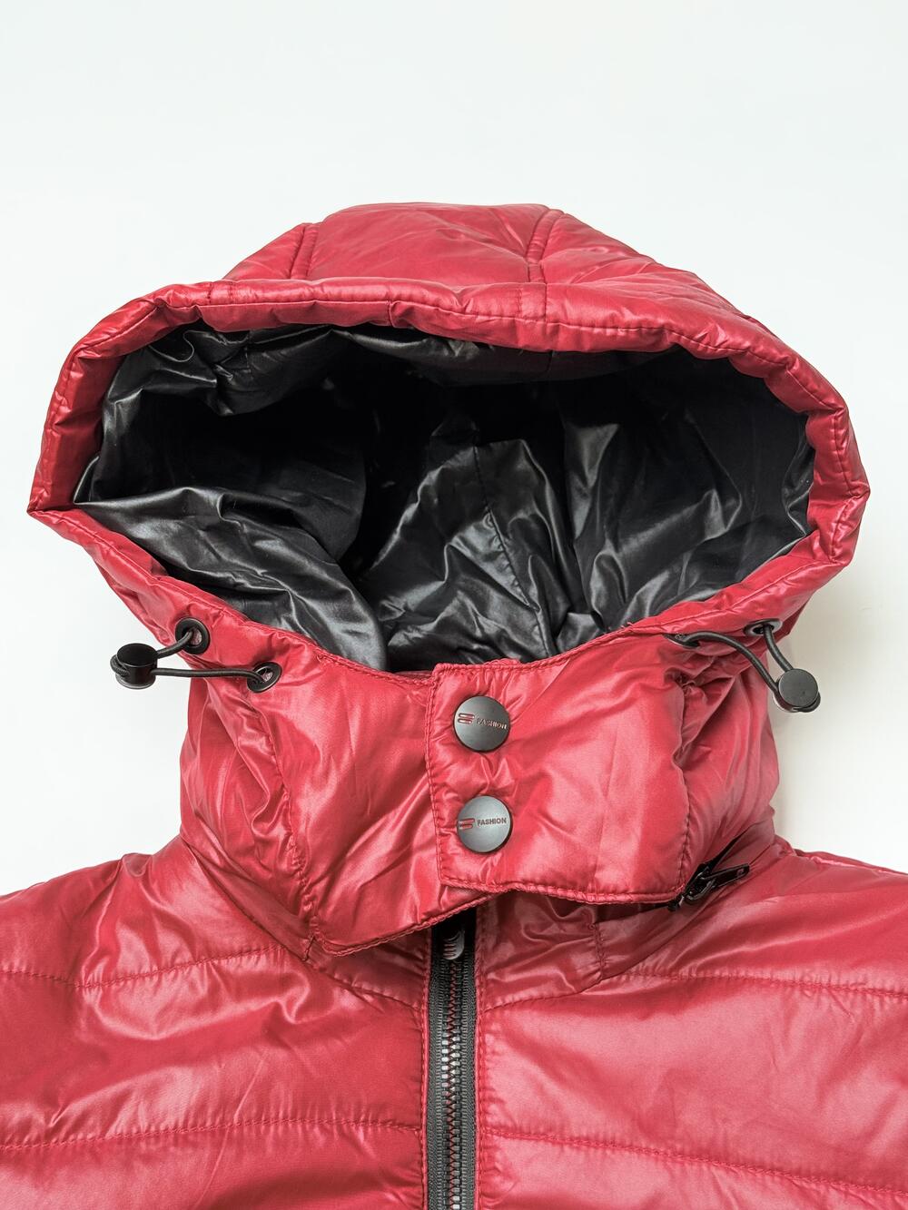 Тепла куртка насиченого червоного кольору з легким глянцевим ефектом. Модель має капюшон із високим коміром, що добре захищає від вітру, та зручні кишені на блискавках. Манжети й низ куртки на резинці забезпечують комфорт і щільну посадку. Усередині — гладка підкладка, завдяки якій куртка легко вдягається навіть на светр. Яскравий колір і лаконічний крій роблять її універсальним вибором для щоденного носіння.