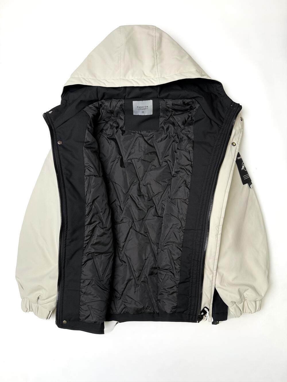 Модна куртка вільного крою з капюшоном і контрастними чорними елементами. Має накладні кишені, блискавку з вітрозахисною планкою та стьобану підкладку всередині. М’який матеріал приємний на дотик і добре тримає форму. Зручна посадка не сковує рухів, а оверсайз-силует додає сучасності. Ідеальний варіант для активних днів — поєднує комфорт і стиль у будь-яку погоду.