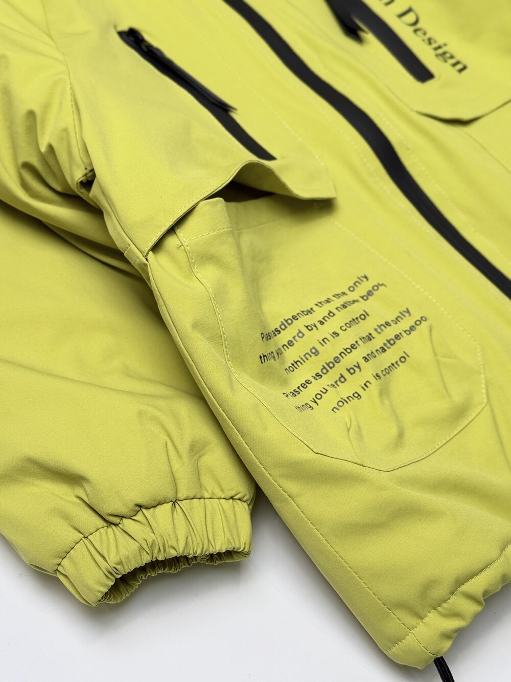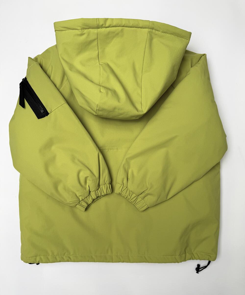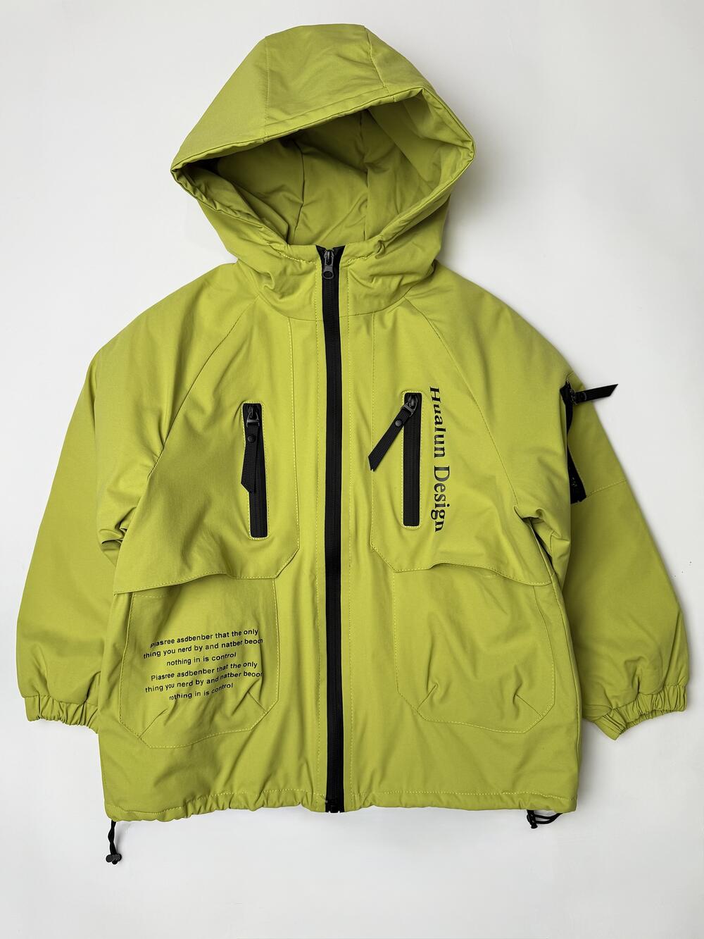 Легка демісезонна куртка яскравого відтінку лайм. Модель зручного прямого крою, із функціональними кишенями на блискавках і капюшоном. Внизу має регулювальні шнурки для кращої посадки. Усередині — м’яка стьобана підкладка. Завдяки яскравому кольору та практичному дизайну куртка стане стильним акцентом повсякденних образів і надійно захистить від вітру.