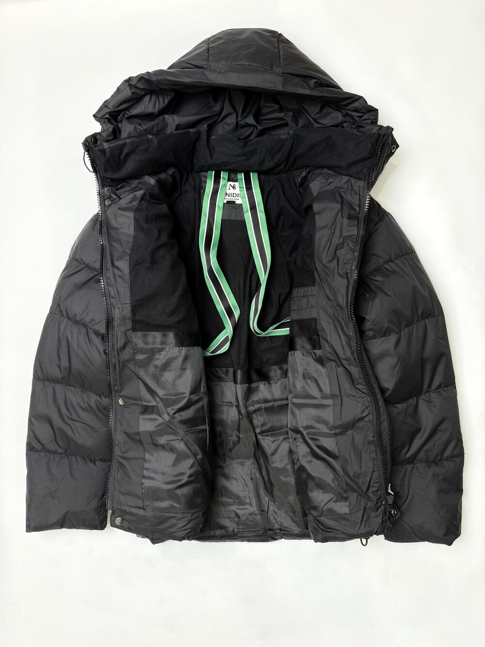 Тепла куртка з капюшоном і високим коміром для надійного захисту від холоду. Модель має блискавку з планкою на кнопках, глибокі кишені на застібках і внутрішні лямки для зручного носіння. Еластичні манжети утримують тепло, а легкий наповнювач забезпечує комфорт навіть у морозну погоду.