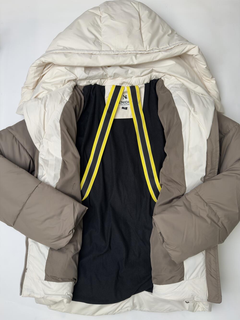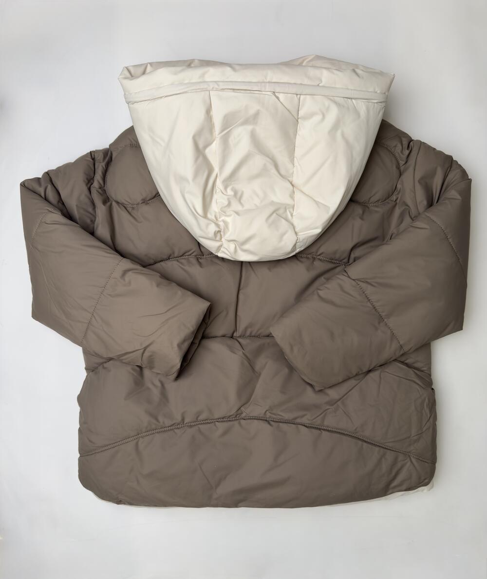 Тепла зимова куртка з об’ємним капюшоном контрастного кольору. Модель має застібку-блискавку з планкою на кнопках, глибокі кишені та внутрішні лямки для зручного носіння. Еластичні манжети утримують тепло, а легкий утеплювач забезпечує комфорт навіть у холодну погоду