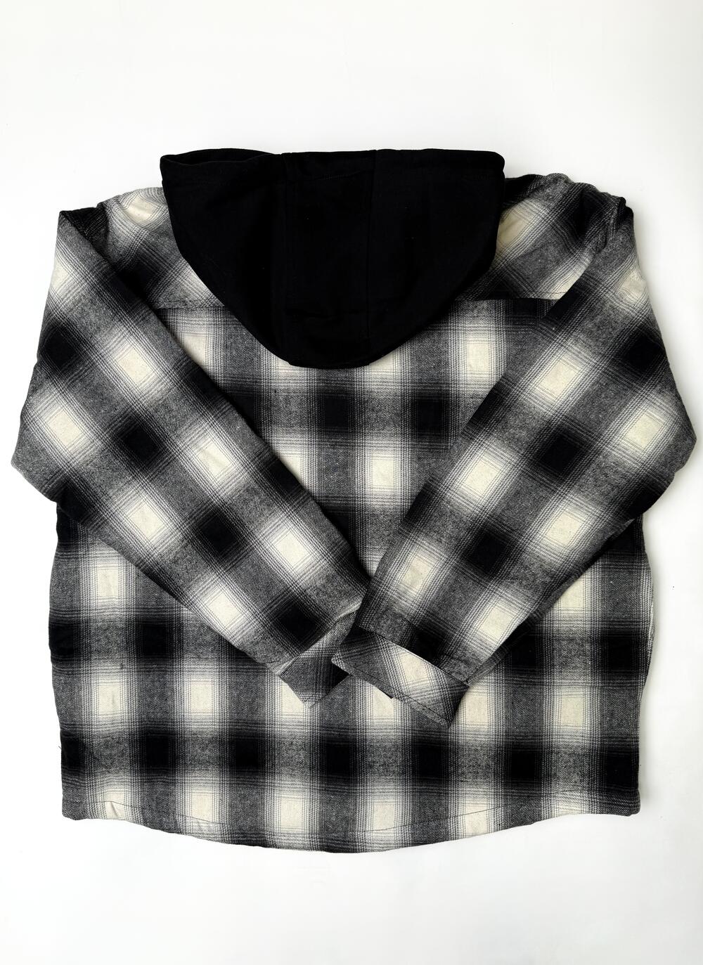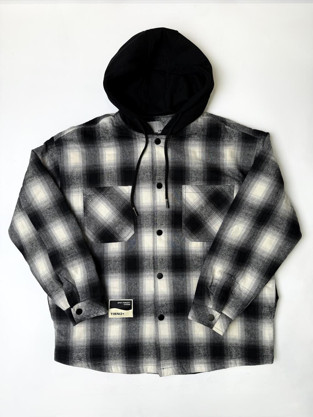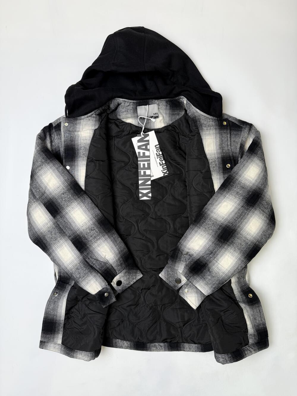 Стильна куртка у форматі overshirt — поєднання м’якої картатої тканини й утепленої підкладки. Капюшон з контрастної тканини додає спортивного настрою, а чорнобіла гама робить річ універсальною — підходить як до джинсів, так і до штанів чи худі. Комфортна, тепла й легко комбінується в повсякденних образах.