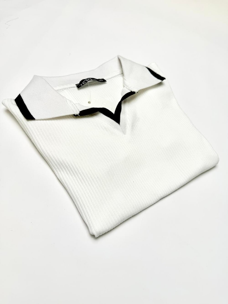 М’яка трикотажна тканина комфортно облягає тіло, не сковуючи рухів, а класичний комір додає охайності навіть у повсякденному вигляді.