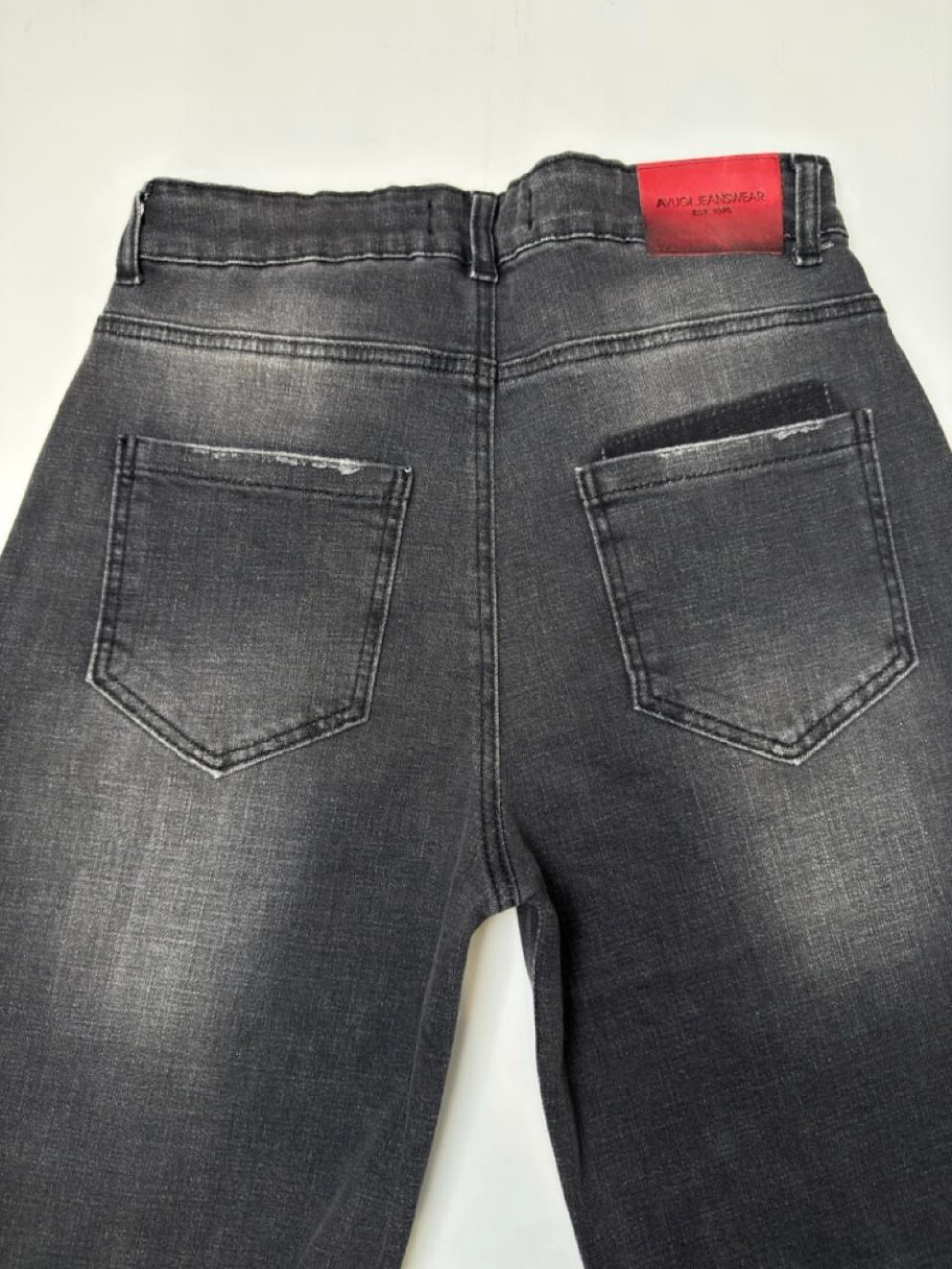 Модель прямого крою з легкою потертістю візуально подовжує силует і створює акуратний вигляд.