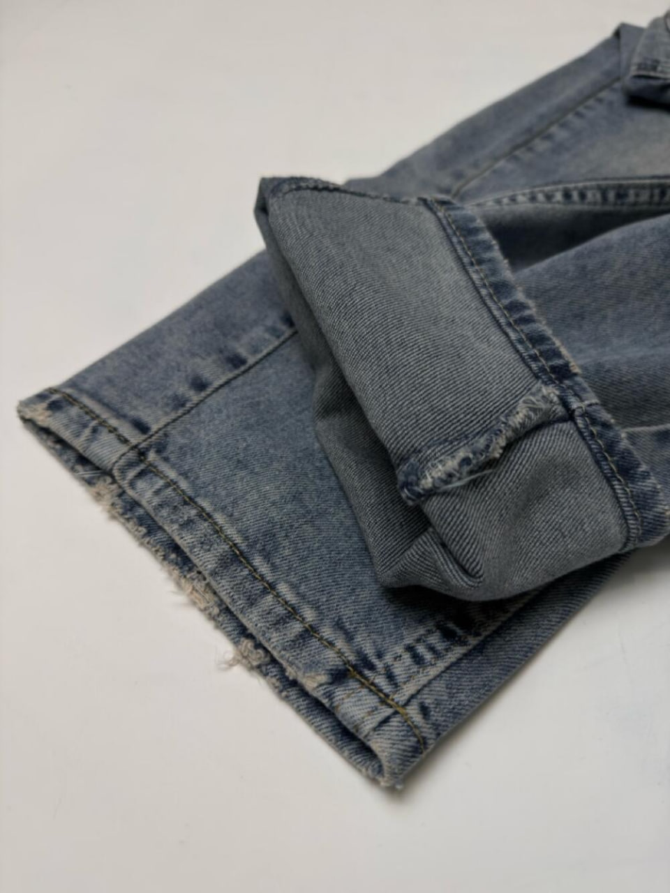М’який денім із делікатним ефектом потертості створює стриманий і водночас сучасний вигляд.
