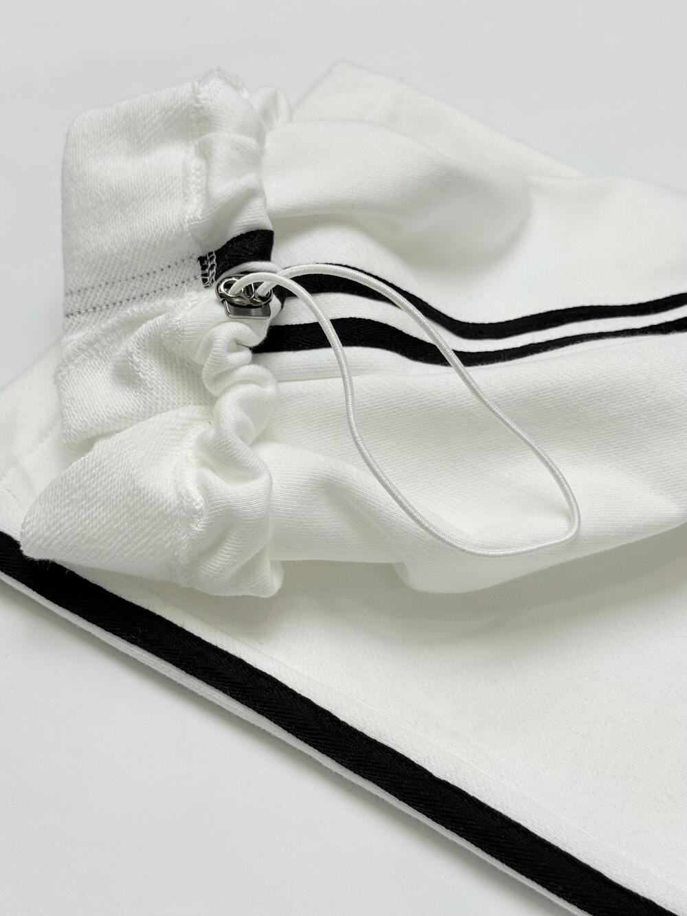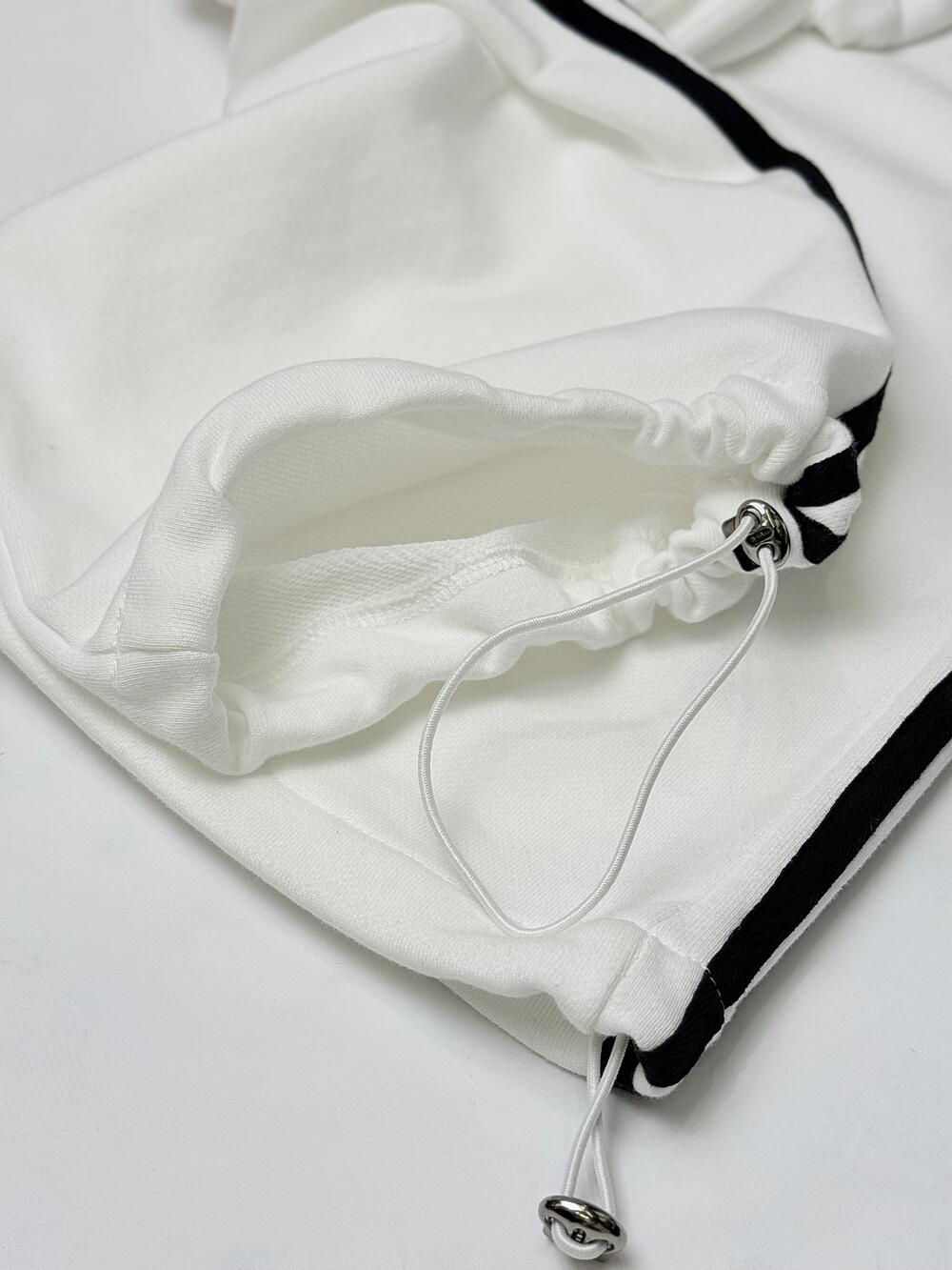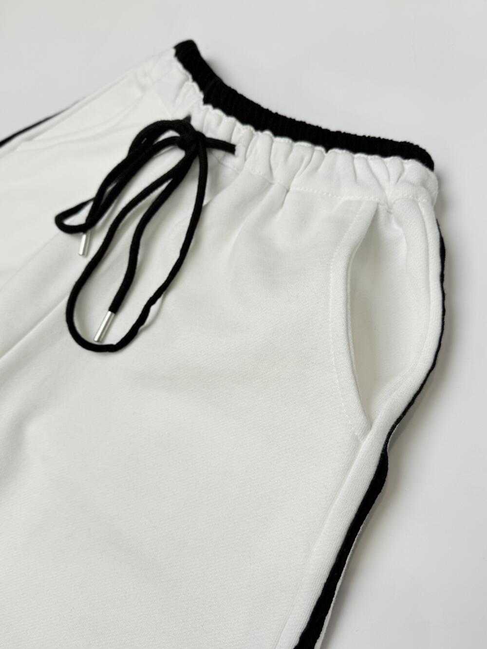 Доповнює – еластична резинка на поясі, зовнішній край якої теж чорного кольору і додатково регулюючий шнурок, що ще більше підкреслює витонченість.