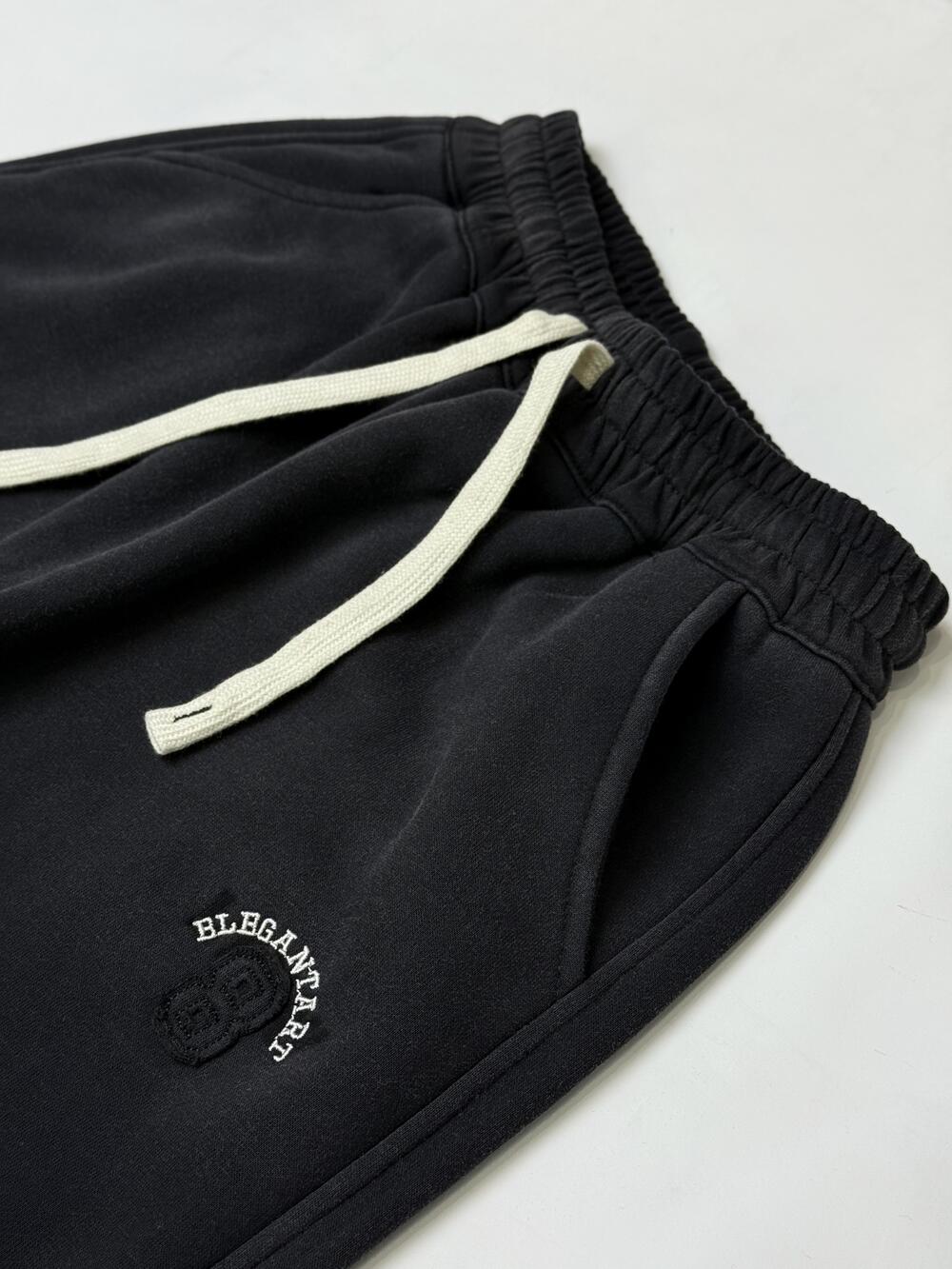 Зручна базова модель із м’яким начосом усередині — забезпечує тепло й комфорт у прохолодну погоду. На передній частині — акуратна вишивка у вигляді цифри “8”, що додає стильного акценту. Пояс на еластичній резинці з контрастним шнурком для регулювання, знизу — манжети, що гарно фіксують штанини. Є врізні кишені по боках. Практичний варіант для щоденного носіння.