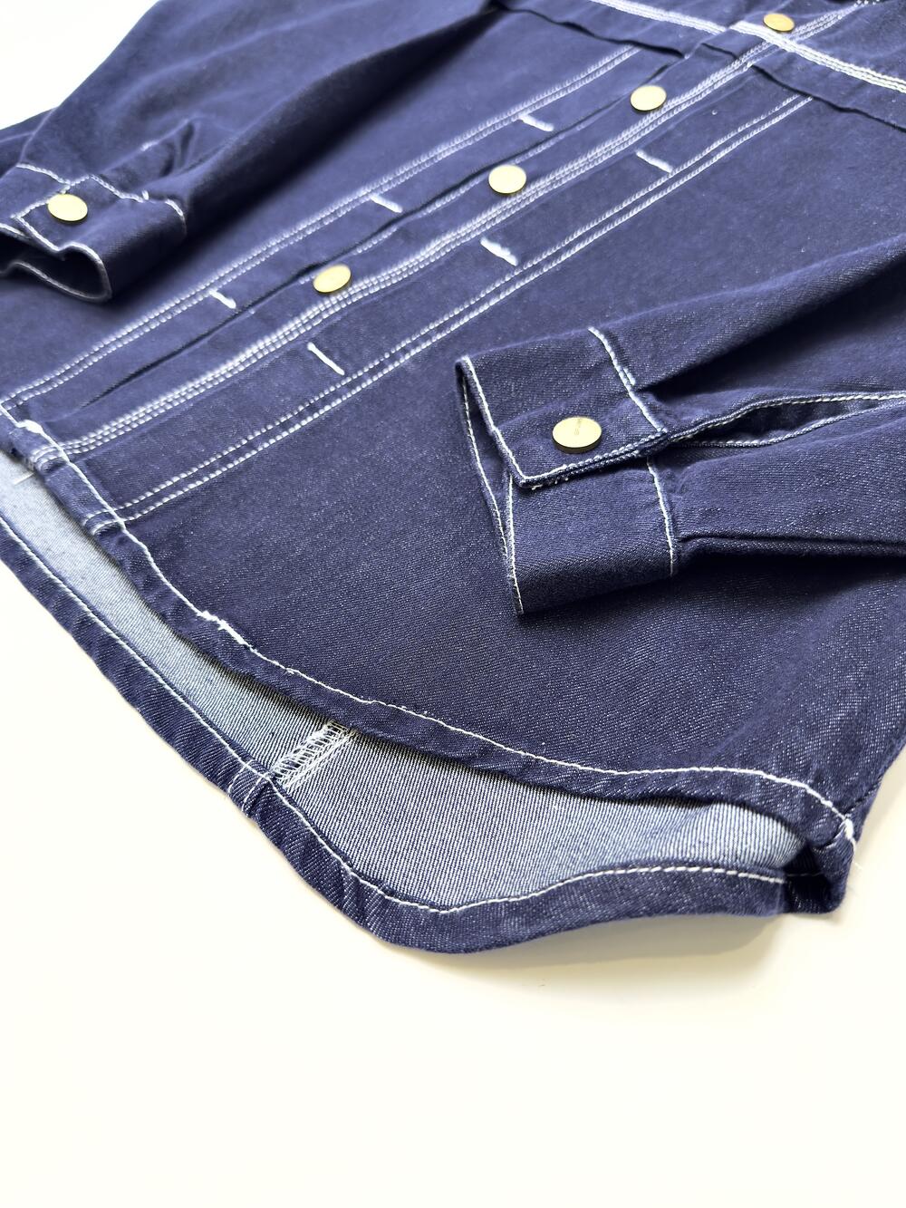 Класична джинсова сорочка з контрастними білими швами — базова річ у гардеробі, що ніколи не виходить із моди.