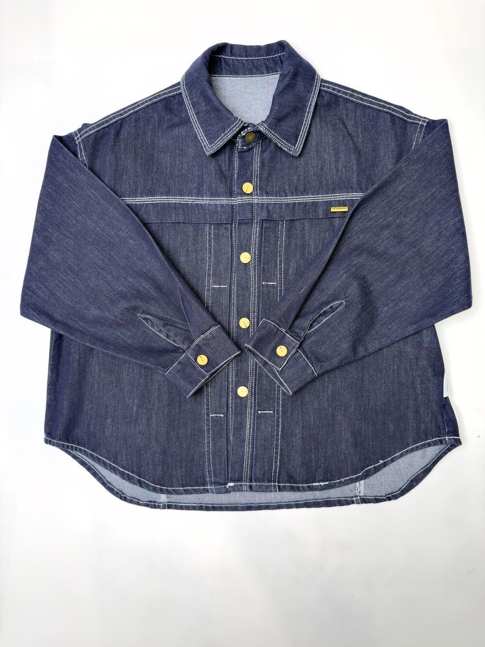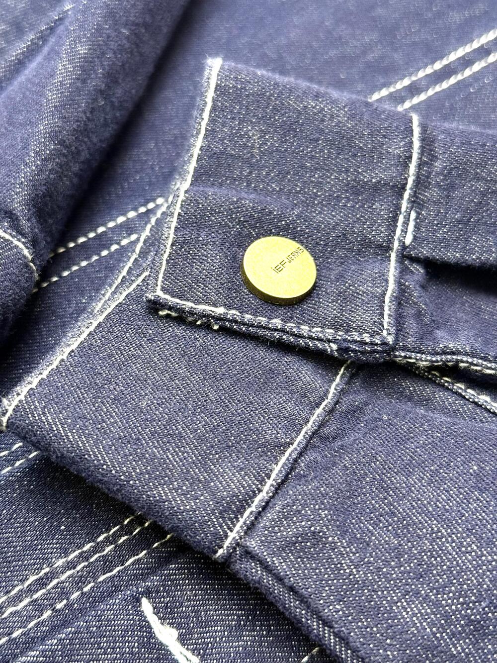 Щільний денім тримає форму, а жовті кнопки додають стильного акценту.