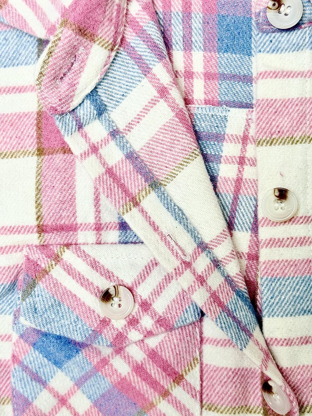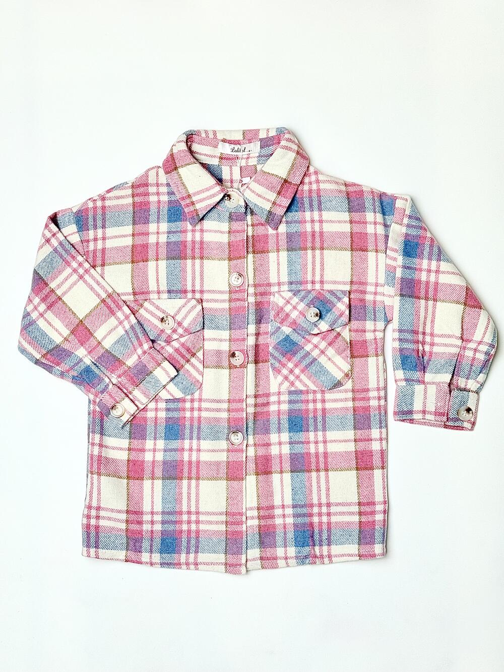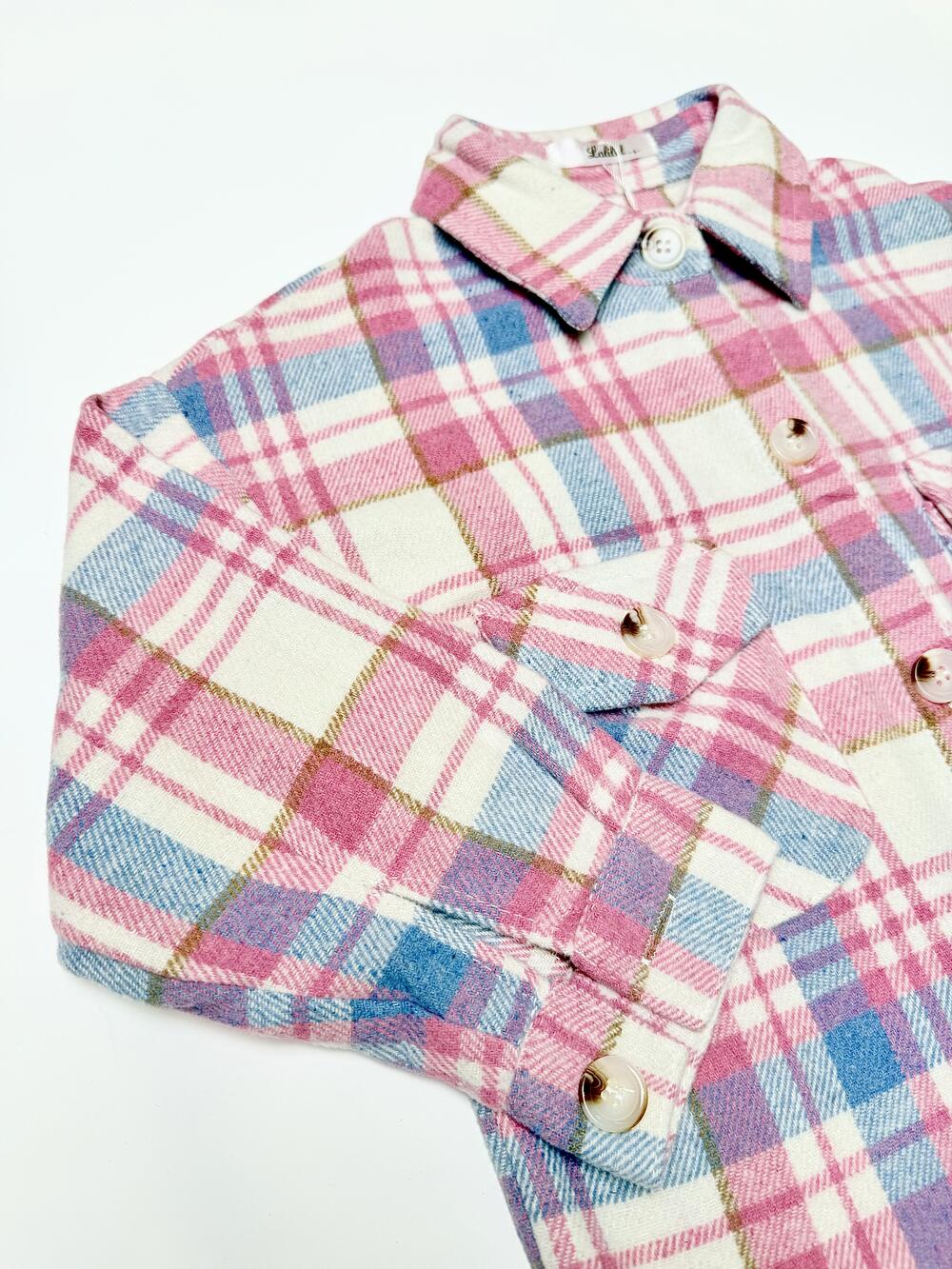 М’яка фланелева сорочка в рожево-блакитну клітинку.