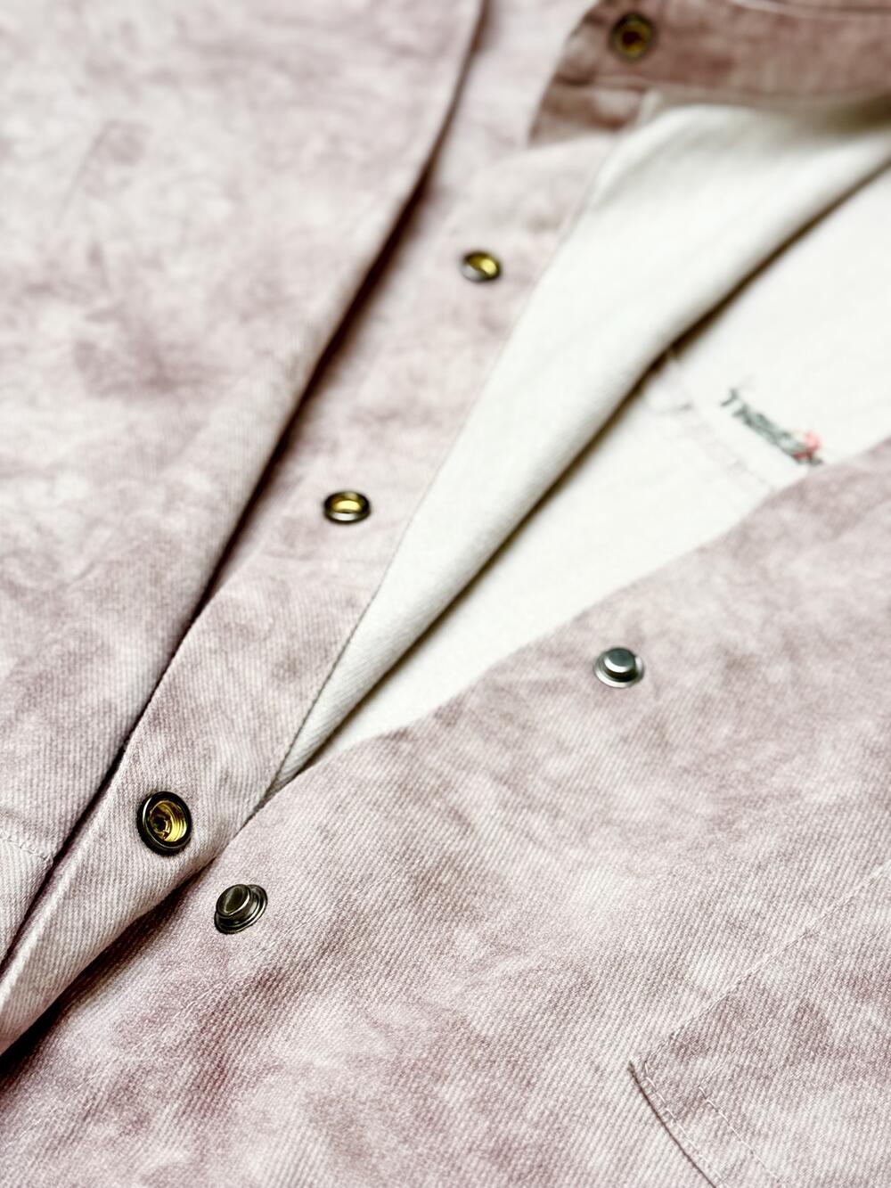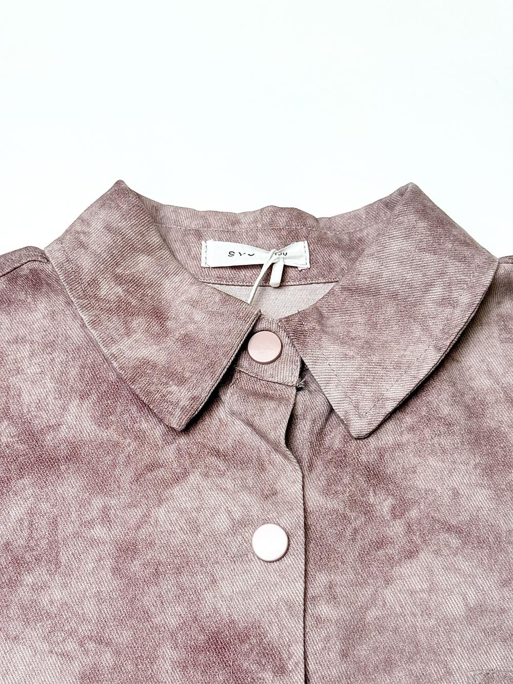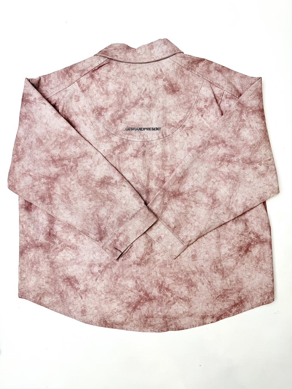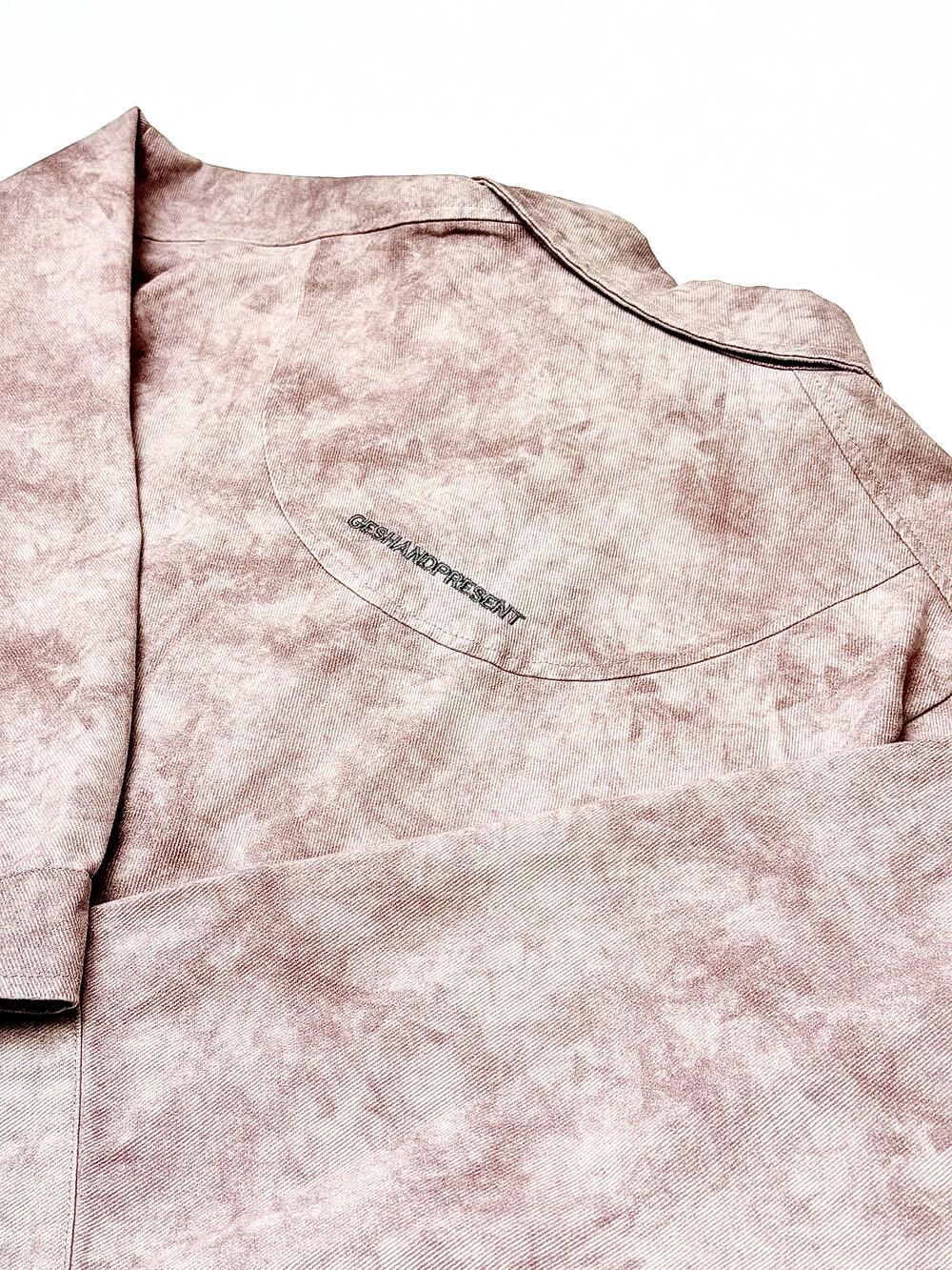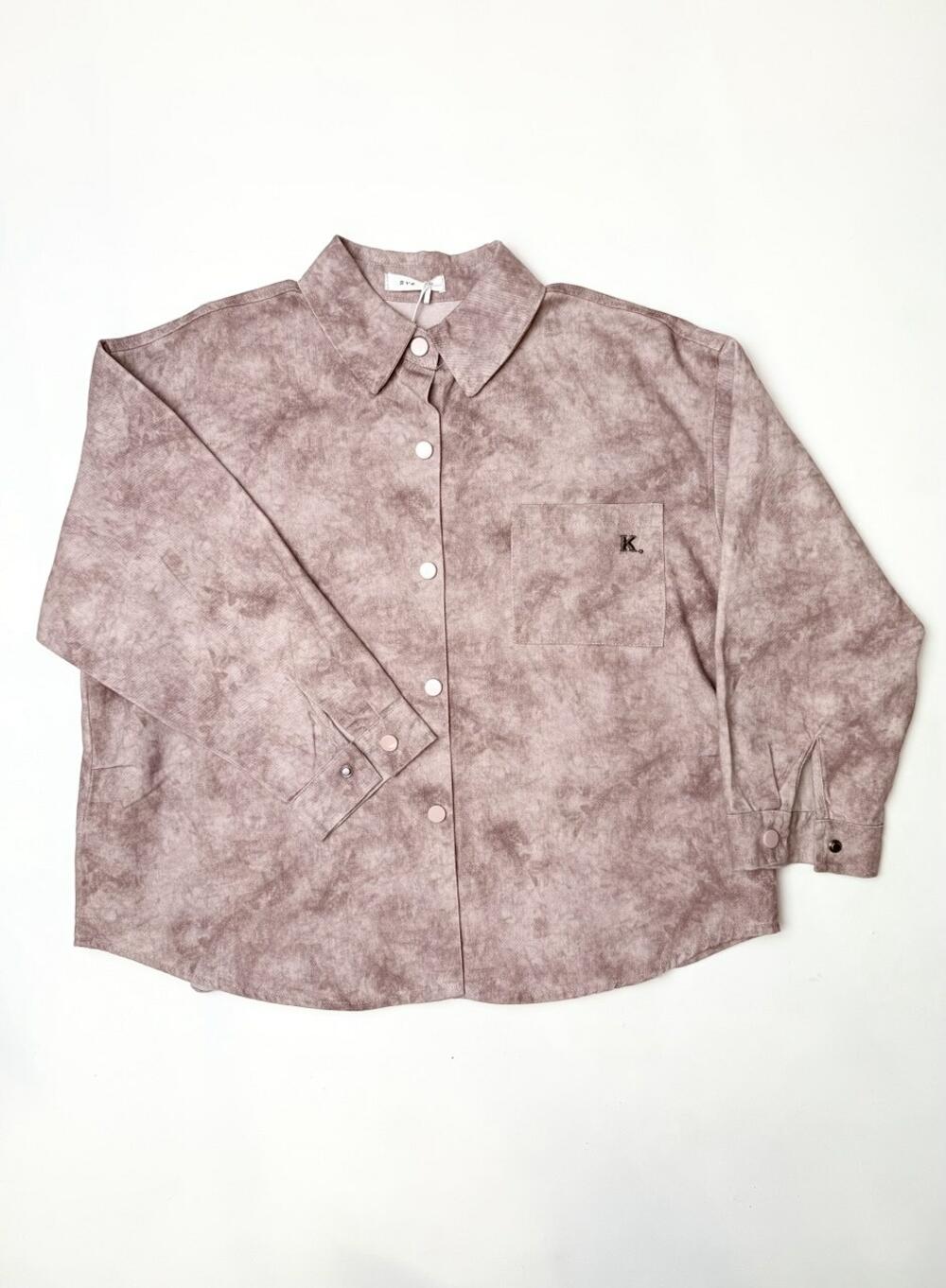 Стильна сорочка. Цікаве поєднання одного кольору в двох тонах, які створюють ефект мармуру. Тканина міцна та щільна бо має ледь помітні діагональні лінії, які створюють фактурність та обєм. Зручні застібки по усій довжині та на манжетах ніжного кольору як і сама сорочка. Мінімалістичний надпис приємного сірого кольору на спині вдало пожєднується із загальним дизайном.Практична нашита кишеня з одного боку з мінімалістичним надписом.