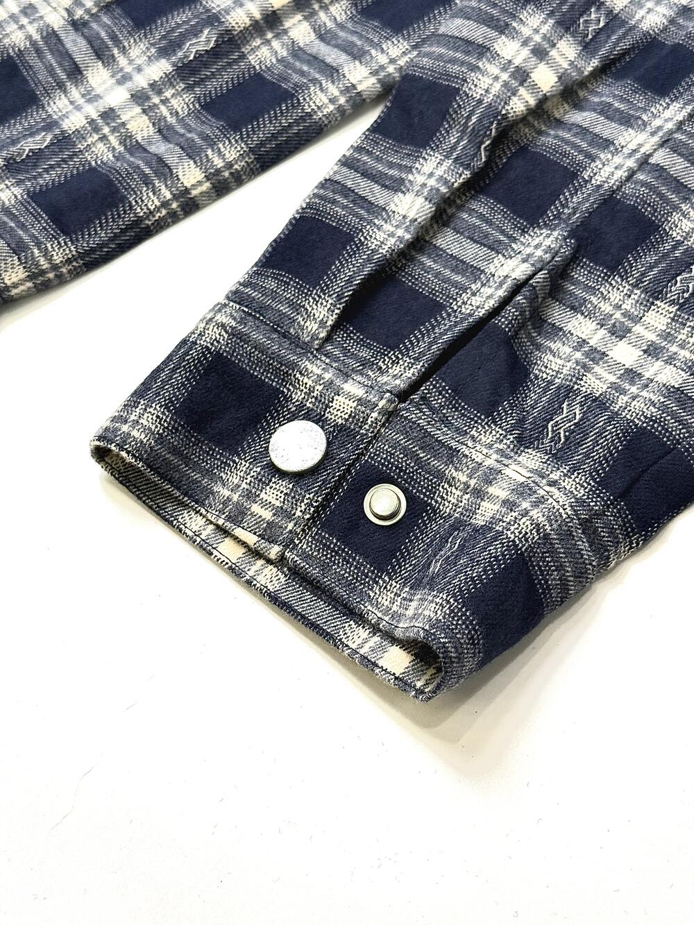 Щільна картата сорочка в синьо-сірій гамі з м’якої фланелі.
