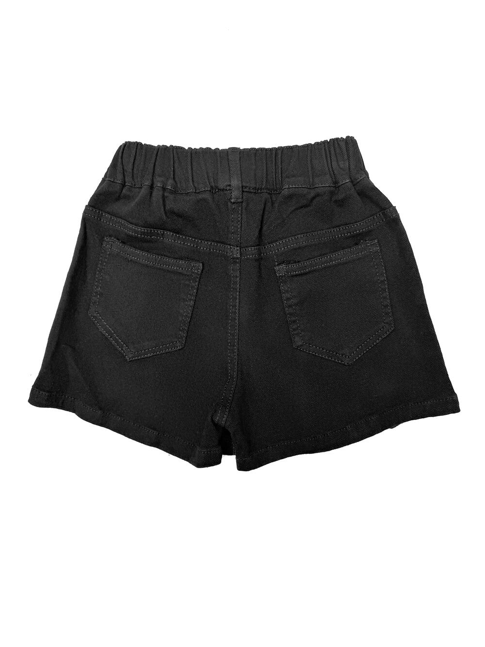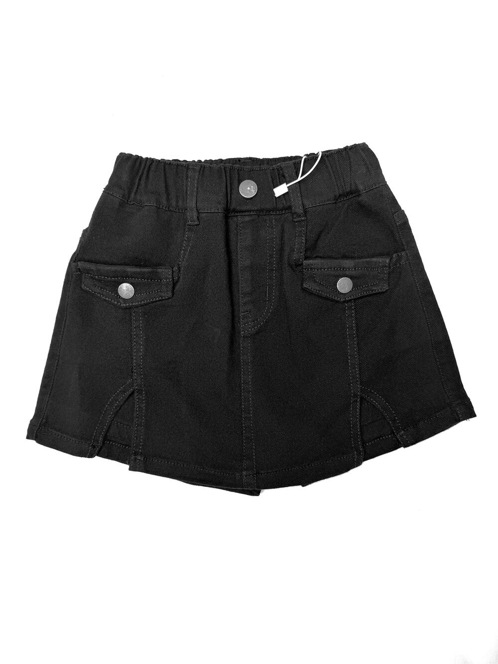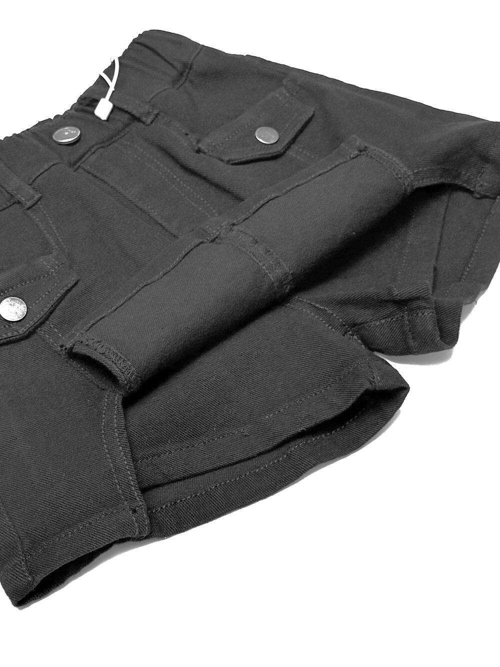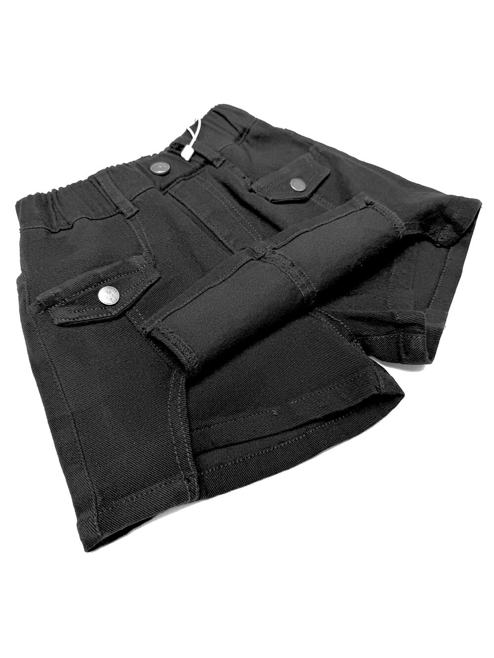 Модель із м’якого стрейч-котону. Спереду — накладні кишені з клапанами та декоративними ґудзиками, позаду еластичний пояс для зручної посадки. Поєднує вигляд спідниці та комфорт шортів, зручна для щоденного носіння.