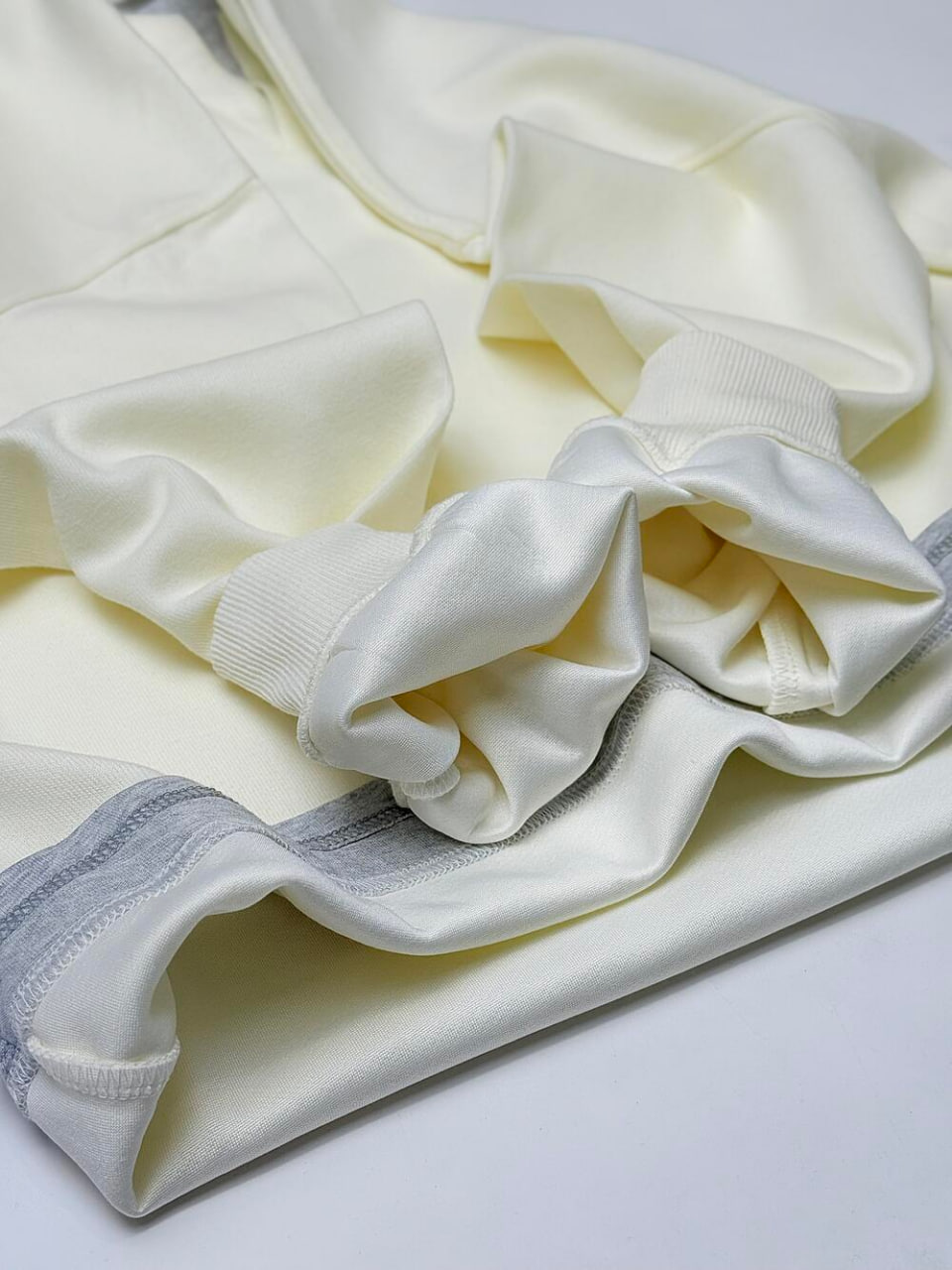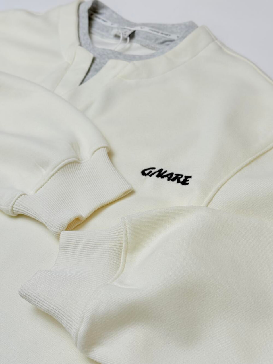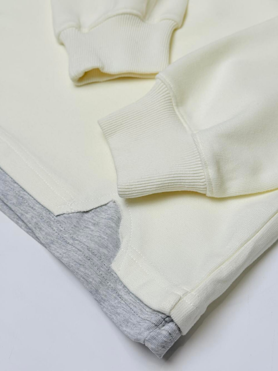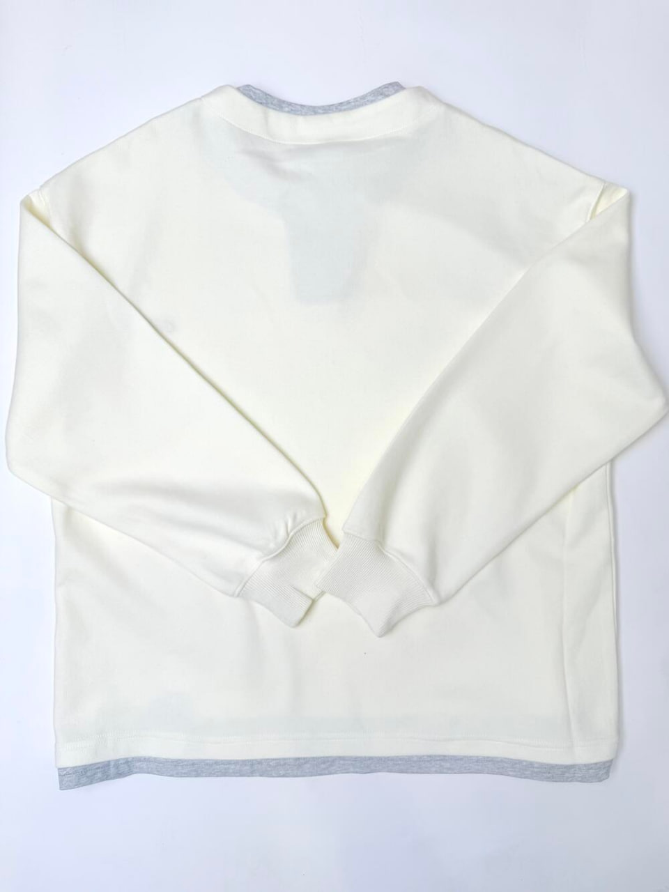 Універсальний світшот. Цікавий крій, що створює ефект шаровості – футболки під світшотом, яка помітка внизу та у комірцевій частині. Вільний та комфортний крій розбавляють чіткі геометричні акценти внизу з обного боку та виріз в центрі. Цікавий надпис з одного боку.