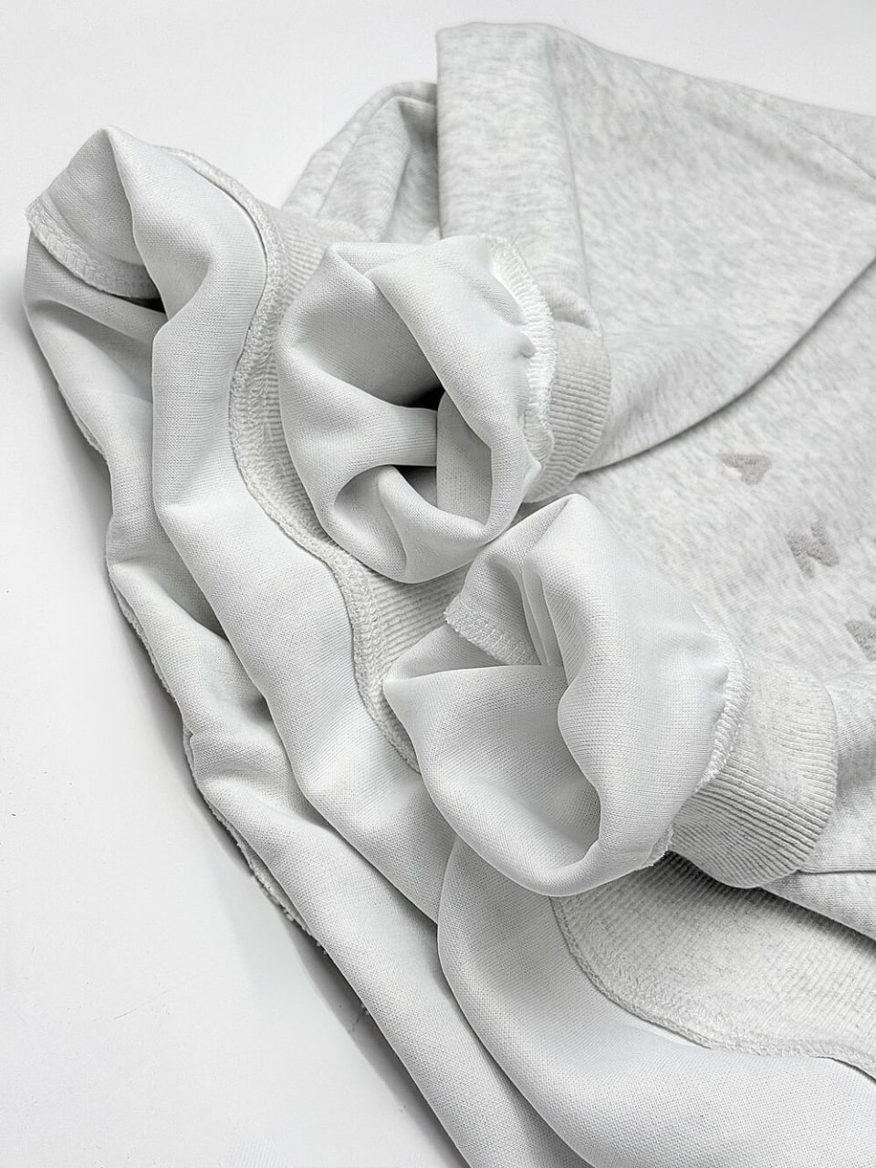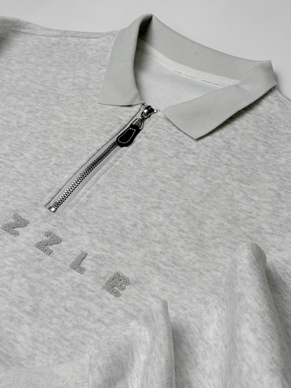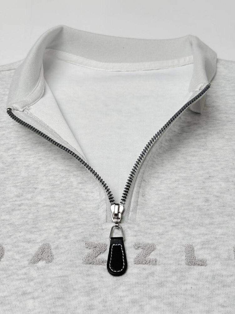 Універсальний світшот. Лаконічне доповнення – невелика застібка в центрі, яка з’єднує мʼякий класичний комірець та обʼємний надпис нижче.